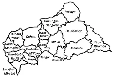 The Central African Republic is divided into 14 administrative prefectures, along with two economic prefectures and one autonomous commune (Bangui). The prefectures are further divided into 71 sub-prefectures.