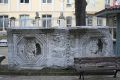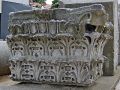 The fourth-century skeuophylakion was replaced in the fifth century by the present-day structure, a rotunda constructed of banded masonry in the lower two levels and of plain brick masonry in the third. Originally this rotunda, probably employed as a treasury for liturgical objects, had a second-floor internal gallery accessed by an external spiral staircase and two levels of niches for storage. A further row of windows with marble window frames on the third level remain bricked up. The gallery was supported on monumental consoles with carved acanthus designs, similar to those used on the late 5th-century Column of Leo. A large lintel of the skeuophylakion's western entrance – bricked up during the Ottoman era – was discovered inside the rotunda when it was archaeologically cleared to its foundations in 1979, during which time the brickwork was also repointed. The skeuophylakion was again restored in 2014 by the Vakıflar.[4]