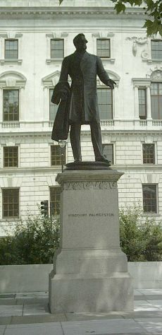 Henry John Temple, 3rd Viscount Palmerston, KG, GCB, PC (October 20, 1784 â October 18, 1865) was a British statesman who served twice as Prime Minister in the mid-nineteenth century. He was in government office almost continuously from 1807 until his death in 1865, beginning his parliamentary career as a Tory and concluding it as a Liberal. He was Secretary for War 1809 to 1828. He is best remembered for his direction of British foreign policy through a period when the United Kingdom was at the height of its power, serving terms as both Foreign Secretary (1830-1834, 1835-1841, and 1846-1851) and Prime Minister (1855-1858, 1859-1865). Palmerston helped to re-shape the European map; he convened the conferences that recognized Greek and also Belgian independence, the latter treaty taking Britain into World War I in defense of Belgium's neutrality. Palmerston's legacy, then, also impacted a major twentieth century event.