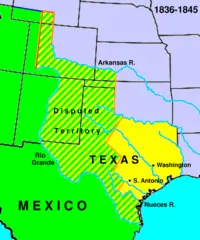 The Republic of Texas. The present-day outlines of the U.S. states are superimposed on the boundaries of 1836–1845. | |||||||||