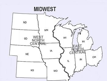 The North Central Region is defined by the Census Bureau as these 12 states: