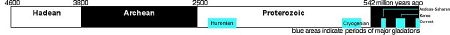 - Snowball Earth/Varangian glaciation (Hadean and Paleoproterozoic)