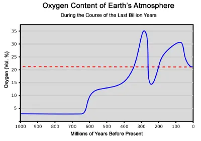 | 1,700 Ma | end of the banded iron formations and red beds become abundant (non-reducing atmosphere) |