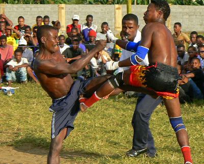 A number of traditional pastimes have emerged in Madagascar. Moraingy, a type of hand-to-hand combat, is a popular spectator sport in coastal regions. It is traditionally practiced by men, but women have recently begun to participate. The wrestling of zebu cattle, which is named savika or tolon-omby, is also practiced in many regions.[11] In addition to sports, a wide variety of games are played. Among the most emblematic is fanorona, a board game widespread throughout the Highland regions.