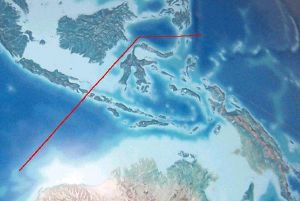 The Wallace Line splits the Indonesian Archipelago, a line that runs along a tectonic plate boundary and separates Asian (Western) species from Australasian (Eastern) species. The islands between Java/Borneo and Papua form a mixed zone, known as Wallacea, where both types occur.