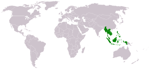 Brunei · Cambodia · Christmas Island (Australia) · Cocos (Keeling) Islands (Australia) · East Timor · Indonesia · Laos · Malaysia · Myanmar · Philippines · Singapore · Thailand · Vietnam