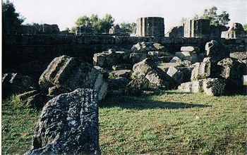 Olympia (Greek: ÎÎ»Ï ÎŒÏία OlympĂ'a or ÎλÏÎŒÏÎčα OlĂœmpia, older transliterations, Olimpia, Olimbia), a sanctuary of ancient Greece in Elis, is known for having been the site of the Olympic Games in classical times. Looking at the ruins as they stand silently among the low trees at Olympia, it is not hard to imagine how the Olympic Games cultivated the collective consciousness of the Hellenes. In ancient times, Greek men from all corners of the Mediterranean made the pilgrimage to Olympia to pay tribute to Zeus, to forge friendships and alliances, and to enjoy or compete in poetry, music, and athletic events.