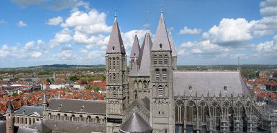 Belgium has a number of medium-size and small cities, centered on rows of terraced houses built among ancient churches and marketplaces. There are many old monuments visible in Belgium, like the romanesque Collégiale Saint-Gertrude de Nivelles (1046) and Cathédrale Notre-Dame de Tournai, gothic Antwerp cathedral (fifteenth century) and baroque Brussels Grand' Place. In the nineteenth century, working-class cities were built in mining and industrial areas. At the end of the nineteenth century and at the beginning of the twentieth century, the historicism style began to dominate the urban Belgian landscape (e.g. Justice Palace of Brussels, 50th-Anniversary Park in Brussels). Brussels became one of the major European cities for the development of the Art Nouveau style, with Victor Horta and Henry van de Velde the main exponents. The Manneken Pis, a Brussels landmark, is a small bronze fountain sculpture depicting a naked little boy apparently urinating into the fountain's basin.