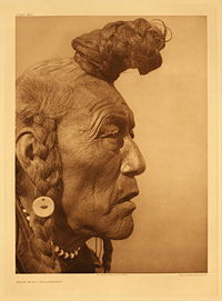 The Blackfoot, like other Plains Indians of North America, lived without horses for thousands of years while still maintaining a hunter-gatherer way of life. Up until around 1730, the Blackfoot traveled by foot and used dogs to carry and pull some of their goods. They had not seen horses in their previous lands, but were introduced to them on the Plains, as other tribes, such as the Shoshone, had already adopted their use.[3] They saw the advantages of horses and wanted some. The Blackfoot called the horses ponokamita (elk dogs).[4] The horses could carry much more weight than dogs and moved at a greater speed. They could be ridden for hunting and travel.[5]