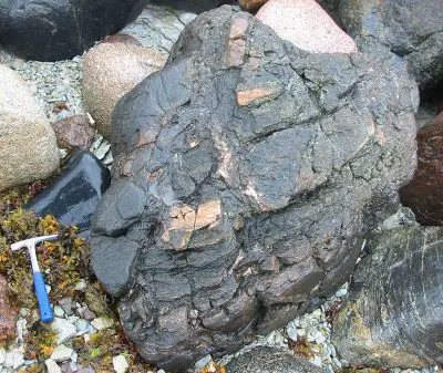 Lavas may also pick up foreign rock fragments, especially if flowing over unconsolidated rubble on the flanks of a volcano, and these form volcanic breccias, also called pillow breccias.