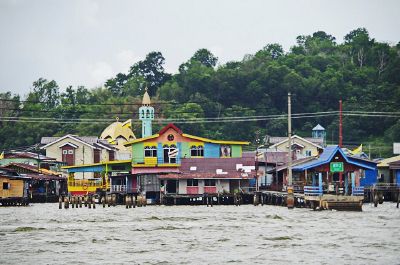 Kampong Ayer, or the water village, is a district of Bandar Seri Begawan where 30,000 people, or 10 percent of the nation’s total population, live. All water village buildings are constructed on stilts above the Brunei River. It is the largest and most famous water settlement of Southeast Asia.