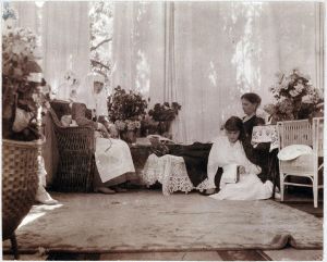 | Grand Duchess Anastasia knitting in her mother's boudoir. | |