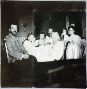 When Anastasia was born, her parents and extended family were disappointed to have a fourth daughter. Tsar Nicholas II went for a long walk to compose himself before going to visit Tsarina Alexandra and the newborn Anastasia for the first time.[1] One meaning of her name is "the breaker of chains" or "the prison opener." The fourth grand duchess received her name because, in honor of her birth, her father pardoned and reinstated students who had been imprisoned for participating in riots in Saint Petersburg and Moscow the previous winter. Another meaning of the name is "of the resurrection," a fact often alluded to later in stories about her rumored survival. Anastasia's title is most precisely translated as "Grand Princess," meaning that Anastasia, as an "Imperial Highness" was higher in rank than other Princesses in Europe who were "Royal Highnesses." "Grand Duchess" became the most widely used translation of the title into English from Russian.[2]