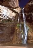 East of Fifty Mile Mountain are the Canyons of the Escalante. The headwaters of the Escalante River are located on the slopes of the Aquarius Plateau, just west of Escalante. North and Birch Creeks merge to form the official start of the river and, just below the town, is joined by the flow of Pine Creek. From there the river runs southeast for over 80 miles (130 km) [2] before meeting the Colorado River, in Kane County. The lower section of the river, southeast of Coyote Gulch, is now beneath the surface of Lake Powell.