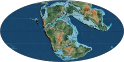 The Jurassic period is an interval of about 55 million years, spanning roughly from 200 to 145 million years ago (mya), from the end of the Triassic period to the beginning of the Cretaceous period. The Jurassic period is noteworthy as the first of two periods that together comprise the Age of Dinosaurs.
