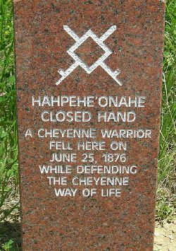 On Memorial Day, 1999, the first of five red granite markers denoting where warriors fell during the battle were placed on the battlefield for Cheyenne warriors Lame White Man and Noisy Walking. Since then, markers have been added each year on June 25th to commemorate the sites discovered within the previous year's period. The warrior markers dot the ravines and hillsides in like manner to the white markers representing where U.S. soldiers fell.