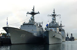 The ROK Navy (ROKN) bares responsibility for conducting naval operations and amphibious landing operations.[4] As a part of its mission, the ROK Navy has engaged in several peacekeeping operations since the turn of the century.[5] The ROK Navy aims to become a blue-water navy by 2020.[5]