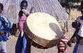 Membraphones are instruments that produce sound by a vibrating membrane. The most prevalent type of membranophone, drums, are utilized as both melodic and rhythmic instruments and come in a variety of shapes and sizes. Some of these drums are beaten with the hand, while other are beaten with a stick or rubbed. Some are single-headed and some double-headed and they are played in ensembles of varying sizes. These include the ngoma kettledrums of South Africa, the West African hourglass pressure drum, bompili clay pot drums usually played by women, frame drums, and countless other drums are played throughout Africa.