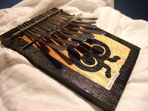 There are two basic types of tuned idiophones that can be used for playing melodies: The mbira or sansa ("hand piano") and the xylophone and the marimba. The mbira is made by arranging a graduated series of strips (wood or metal) on a flat sounding board and placed inside a resonating gourd or box. A unique quality is added to the instrument by the addition of rattling pieces of metal or possibly a chain of sea shells or other small articles to create noise. Mbiras may consist of from one to three manuals and range from five to twenty keys per manual. The Keys are attached to a sound resonator, either a hollow box, as in this case, or placed in an open large gourd to enhance the volume of sound.