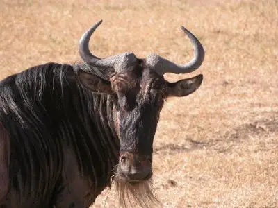 West of these mountains is Serengeti National Park, famous for its annual migration of millions of white bearded wildebeest, as well as its abundance of lions, leopards, elephants, rhinoceroses, and Cape buffalo. Close to the park lies Olduvai Gorge, where many of the oldest hominid fossils and artifacts have been found. Other archaeologically important finds include the oldest evidence of hominids' use of wood at the Kalambo Falls, on the border with Zambia.