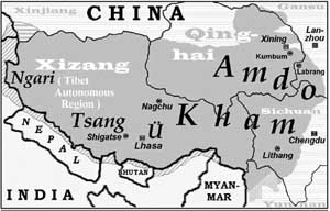 | Tibet Autonomous Region, parts of Qinghai, Sichuan and Gansu provinces (governed by |