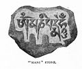 Mani stones, stone plates, rocks or pebbles inscribed with mantra or ashtamangala (a sacred suite of Eight Auspicious Signs), are a form of prayer in Tibetan Buddhism. Mani stones are intentionally placed along the roadsides and rivers or placed together to form mounds or cairns as an offering to local spirits (genius loci). Creating and carving mani stones is a traditional devotional practice.