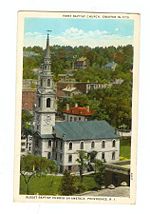 However, Williams did not adopt Baptist views before his banishment from Massachusetts, for opposition to infant baptism was not charged against him by his opponents. About March 1639, Williams was re-baptized himself and then immediately proceeded to re-baptize 12 others. Thus was constituted a Baptist church which still survives as the First Baptist Church in America. At about the same time, John Clarke, Williamsâ compatriot in the cause of religious freedom in the New World, established a Baptist church in Newport, Rhode Island. Both Williams and Clarke are thus credited as being the founders of the Baptist faith in America.