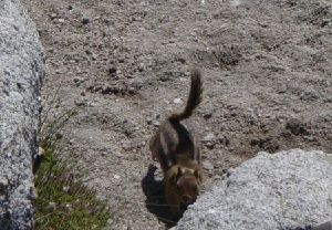 Going higher in elevation, the coniferous forests become purer stands of Red Fir, Western White Pine, Jeffrey Pine, Lodgepole Pine, and the occasional Foxtail pine. Fewer wildlife species tend to be found in these habitats, due to their higher elevation, and lower complexity. Species likely to be found include Golden-mantled Ground Squirrel, Chickaree, Marten, Steller's Jay, Hermit Thrush, and Northern Goshawk. Reptiles are not common, but include Rubber Boa, western fence lizard, and Northern Alligator Lizard.