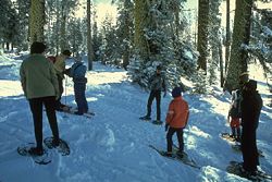 Winter activities: Many of the roads in the park close due to heavy snow in winter; however, Yosemite Valley is open all year long. Downhill skiing is available, as is cross-country skiing and snowshoeing, with several backcountry ski huts open for use. The Bracebridge dinner is an annual holiday event, held since 1927 at The Ahwahnee Hotel, inspired by Washington Irving's descriptions of Squire Bracebridge and English Christmas traditions of the 1700s in his Sketch Book. Between 1929 and 1973, the show was organized by Ansel Adams. [21]